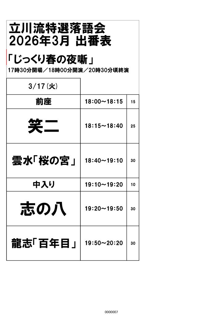 - 2026年3月2日立川流日暮里寄席 3月